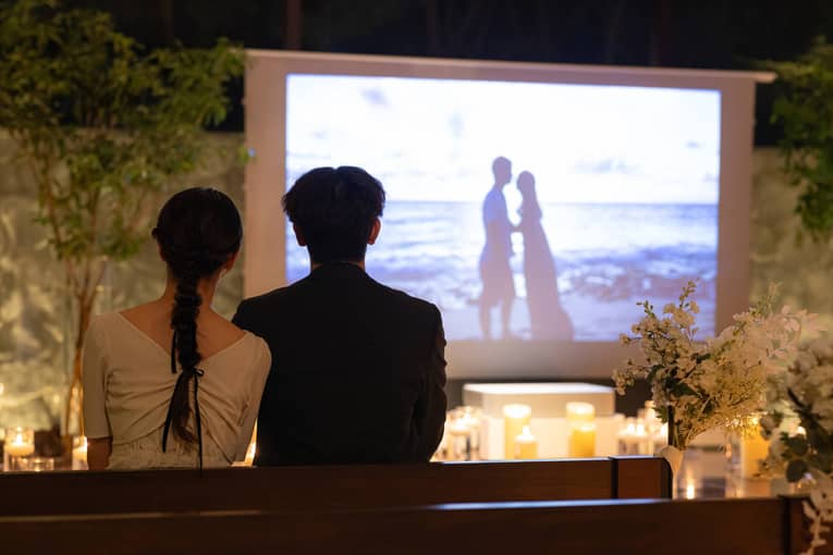 バラの花束の手配や想い出ムービーの上映、記念写真撮影など、おふたりにぴったりなサプライズをご提案します。